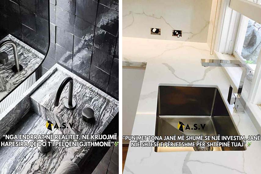 ALBANIAN STONE VISION GROUP: Ne ofrojmë përpunim dhe instalim të mermerit dhe granitit për kuzhina, banjo, shkallë, oxhaqe, fasada, dysheme dhe çdo projekt tjetër arkitektonik, duke garantuar standarde të larta estetike dhe funksionale.