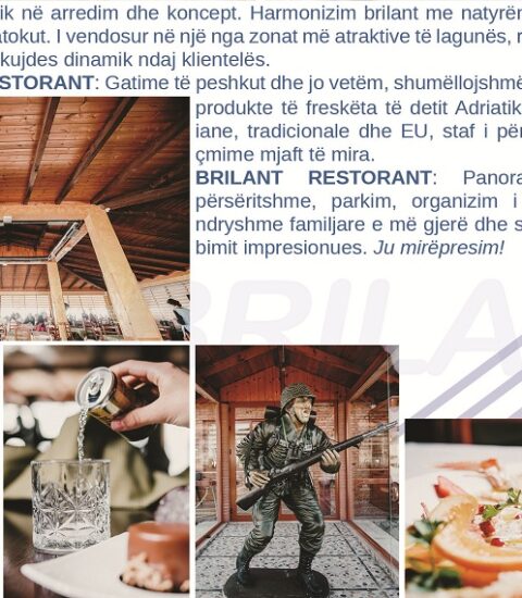 BRILANT RESTORANT: I vendosur në Patok në një nga zonat më atraktive të lagunës restoranti dhe ambjenti rrethues i tij rrezatojnë cilësi, standard dhe kujdes dinamik ndaj klientelës. BRILANT RESTORANT: Gatime të peshkut dhe jo vetëm, shumëllojshmëri zgjedhjesh në menu, produkte të freskëta të detit Adriatik, kuzhinë italiane, tradicionale dhe europiane, staf i përzgjedhur profesional dhe çmime mjaft të mira gjithashtu.