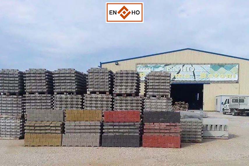 ENHO SHPK – PRODHIME BETONI: Prodhime betoni, pllaka trotuari te modeleve te ndryshme, larmishmeri dhe design. Kollona rrethimi ose kollona vreshtarie. Bordura trotuari te permasave dhe formave te ndryshme. Prodhime me kapacitet te madh. Mbulojme kerkesat e klientit individual dhe kerkesat e kompanive te ndertimit duke qene partner serioz dhe te besueshem. Fokusi i punes dhe perditshmerise sone jane shtepi dhe vila, trotuare te zonave rezidenciale dhe publike, sheshe te ndryshme etj. Puna jone permban jo vetem nje produkt qe i reziston kohes, por edhe nje produkt qe shperfaqet me design dhe ne avangard.