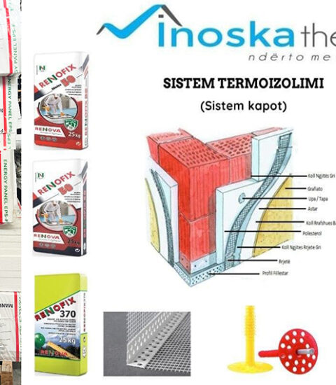 INOSKA THERM: Sisteme kapote Renova; Sisteme termoizolimi per fasada; Materiale ndertimi Renova; Shitje dhe prodhim polisteroli EPS dhe XPS; Aksesore per sisteme termo dhe hidroizolimi; Astar dhe Primer Renova; Fino, Llac final Renova; Grafiato dekorative akrilike Renova; Grafiato e thate Renofix; Grafiato per fasada Renofix; Hidroizolues 2K Renova; Kolle per ngjitje pllakash Renova; Kolle per rrafshim dhe ngjitje Renofix; Llac i gatshem gri dhe i bardhe Renofix; Suva dekorative per fasada Renova; Panele izolimi EPS; Polisterol EPS Grafit; Polisterol EPS per sisteme termoizolimi; Panele Polisterol XPS 2-10cm per izolim termik; Kendore dhe pikore plastike; Profile per fuga dhe profile per polisterol; Rrjeta me fibra xhami; Rrjeta suvatimi; Upa Polisteroli dhe Lesh Guri etj.