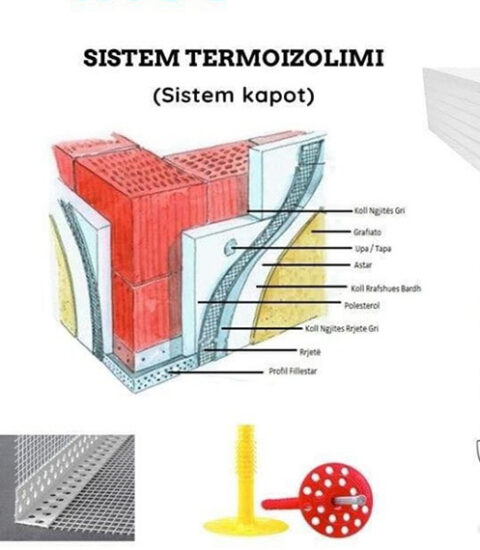 INOSKA THERM: Polisterol EPS (2-8 cm, F 100-150) dhe EPS Grafit; Polisterol XPS (2-10 cm).