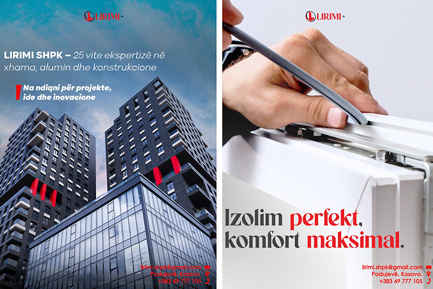 LIRIMI SHPK: Me seli në Podujevë dhe Prishtinë, përfaqëson tashmë një kompani të madhe në treg, e cila ka punuar dhe realizon projekte me kompani të mëdha, këtu në Kosovë dhe gjithashtu ndërkombëtarisht me Evropën dhe në të gjithë botën.