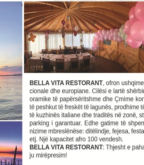 RESTORANT BELLA VITA: Edhe gatime të shpendit të egër, shumëllojshmëri asortimentesh, organizime mbreslënëse të tilla si: ditëlindje, fejesa, festa miqësore, evente mes miqve etj, dhe të gjitha këto në një kapacitet afro 100 vendesh.